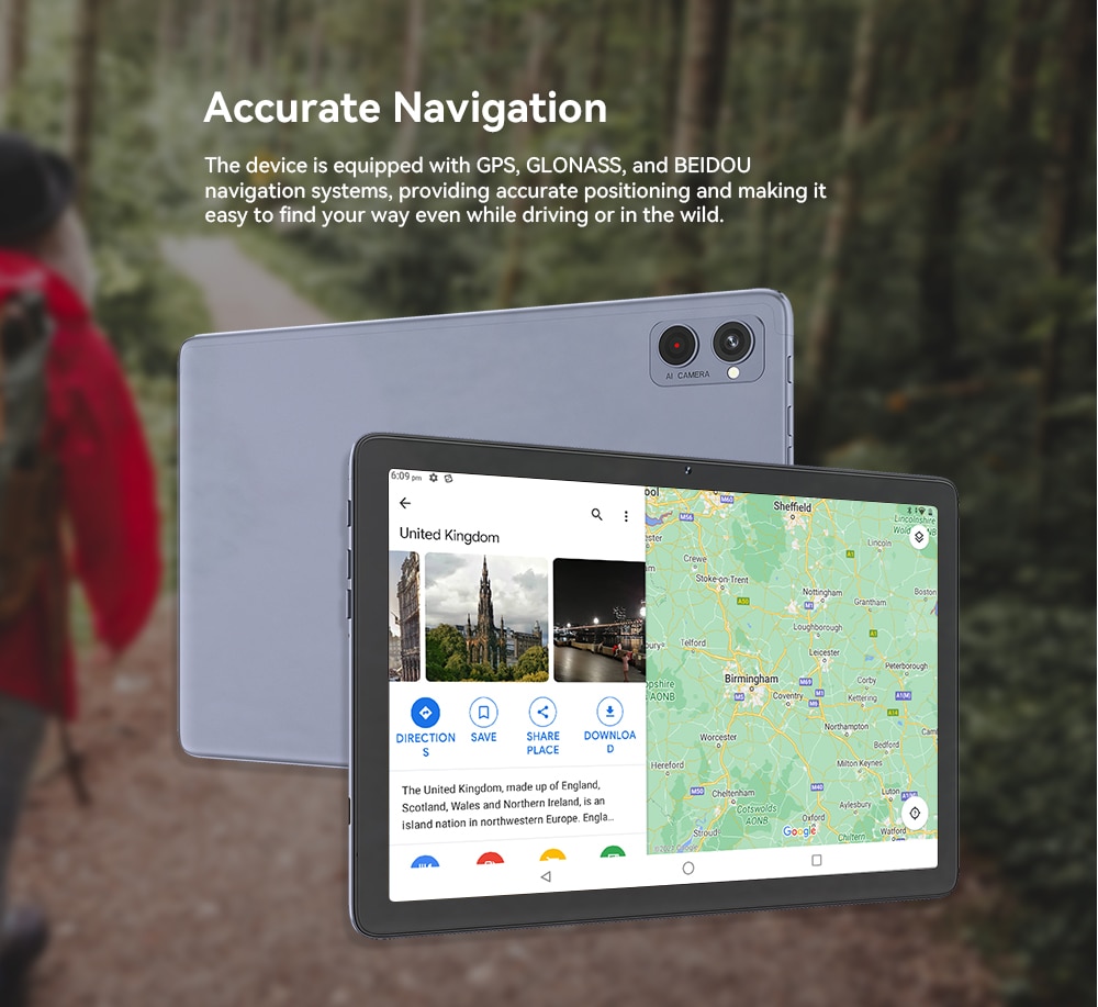The device is equipped with GPS, GLONASS, and BEIDOU navigation systems, providing accurate positioning and making it easy to find your way even while driving or in the wild.