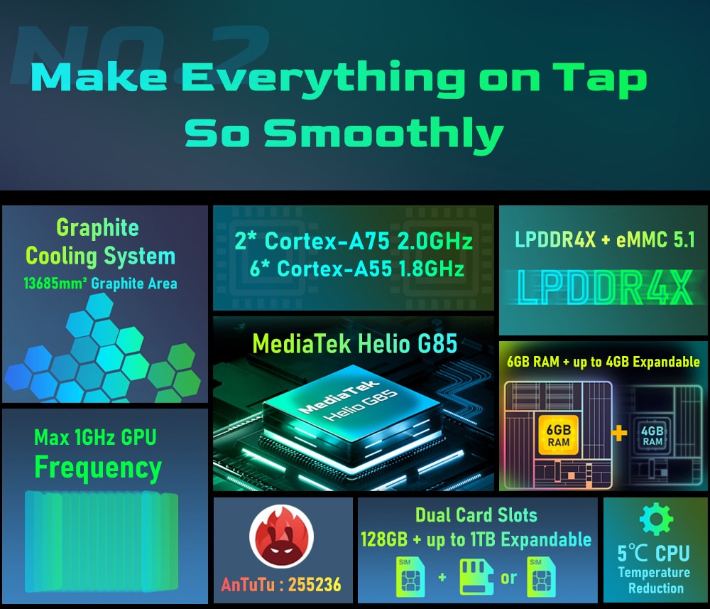CPU -----------MT6769Z, Octa core, 2xA75 2.0GHz 6xA55 1.8GHz